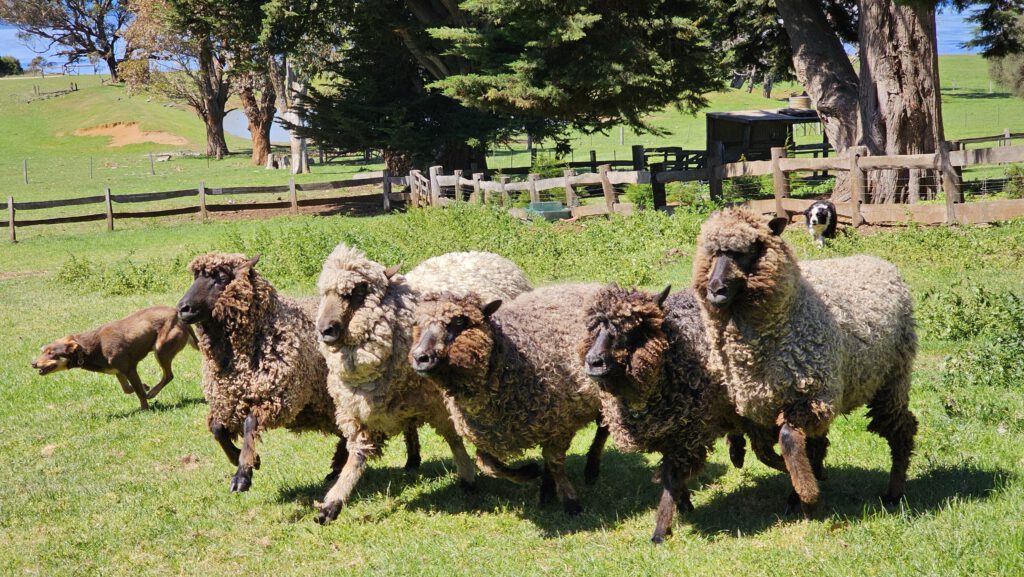 Die nächste Vorführung fand im Freien statt und stand unter dem Titel „Working Dogs“. Hierbei wird demonstriert, wie die Schafhirten mit verschiedenen Techniken die Hütehunde dazu einsetzen können, eine verstreute Schafherde in kürzester Zeit zusammen zu treiben oder sie in eine bestimmte Richtung zu lenken – sehr beeindruckend!
