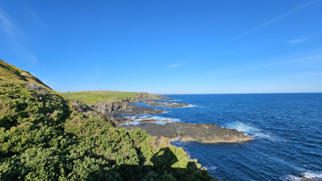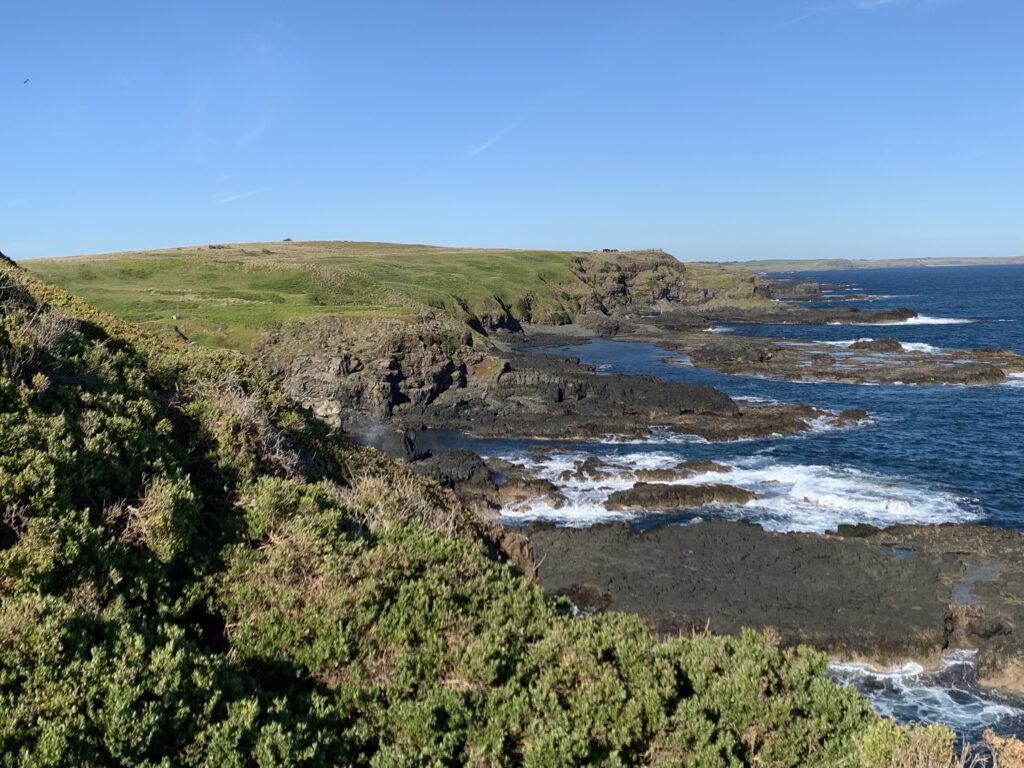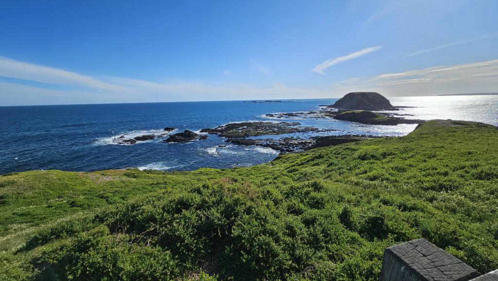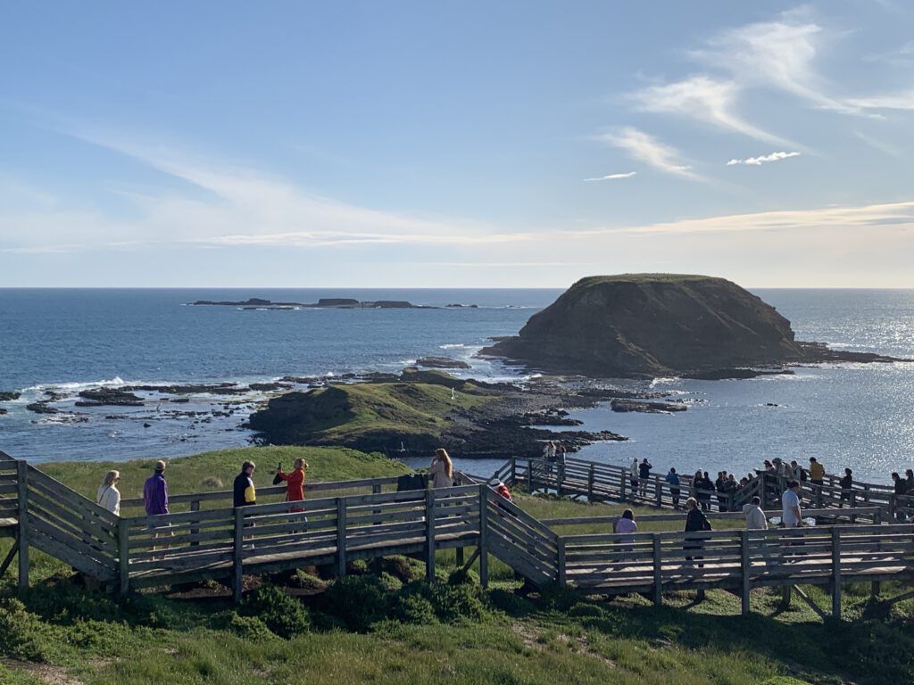 Wir fuhren weiter zur Halbinsel Summerlands im Südwesten von Philipp Island und erreichten gegen 17 Uhr an deren Spitze die Nobbies, eine Ansammlung von kleinen felsigen Inseln, die der Küste vorgelagert sind. Das gleichnamige Besucher Zentrum schloss zwar gerade, aber dank ausgedehnter Holzstege und -Treppen (boardwalks) konnte man das Gelände bequem erkunden und die spektakulären Aussichten genießen.