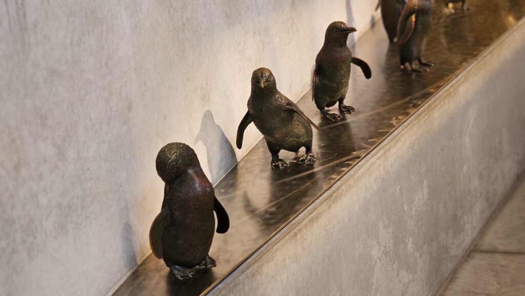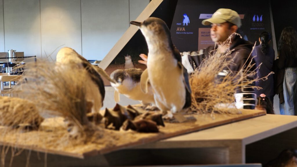 Drinnen im Besucherzentrum gibt zahlreiche Infotafeln mit erläuternden Texten, die die Lebensweise der Zwergpinguine erklären, sowie einige Exponate – hier zwei Beispiele: