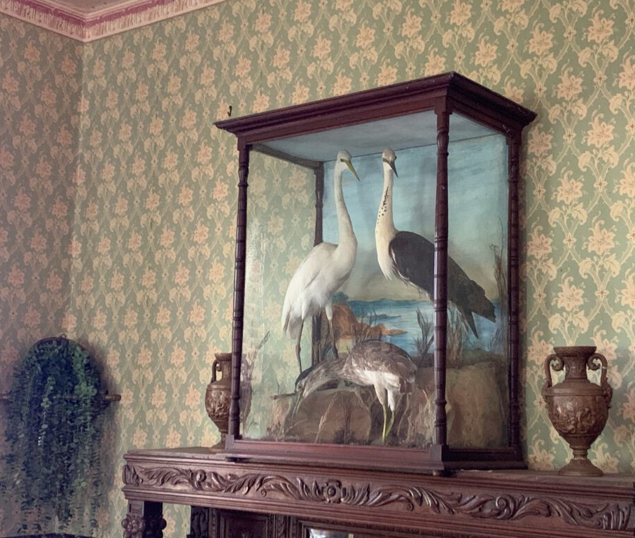 Vitrine mit ausgestopften Vögeln