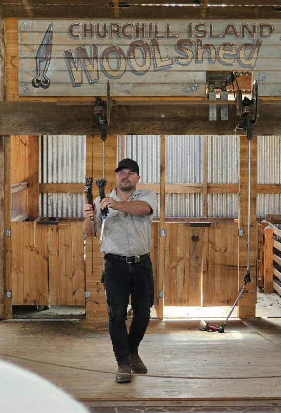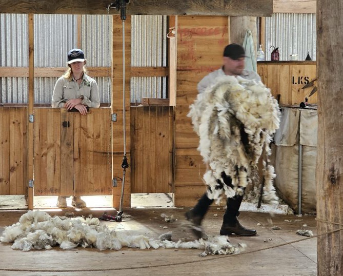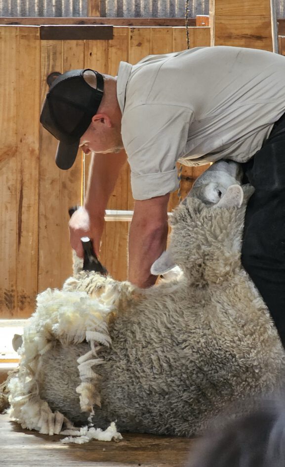 Traditionell veranstalten die Schafscherer regionale und nationale Wettbewerbe, um zu ermitteln wer von ihnen pro Stunde die meisten Schafe scheren kann. Dieser hier brauchte etwa 5 Minuten für ein Schaf.