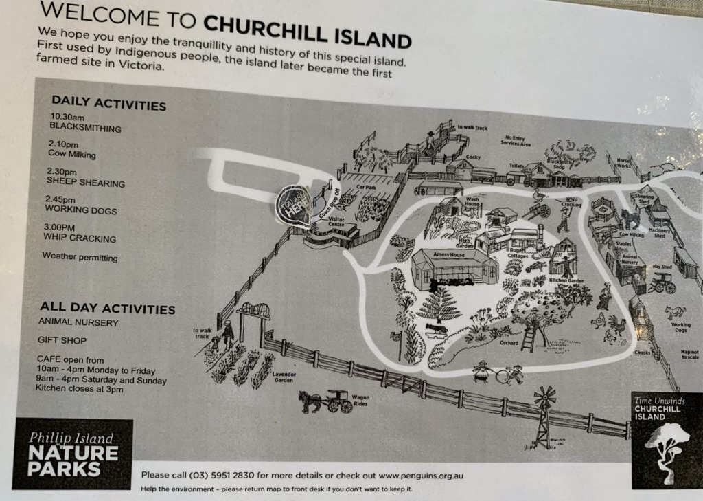 Von dem kleinen Ort Loch fuhren wir in Hillas Auto etwa eine Dreiviertelstunde nach Südwesten, bis wir bei San Remo über eine Brücke nach Phillip Island fuhren, um dann nach wenigen Kilometern über eine weitere Brücke auf die wesentlich kleinere Insel Churchill Island zu gelangen.